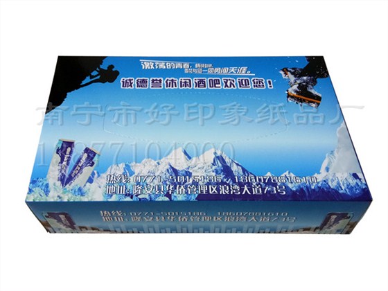 定制喜讯:祝贺休闲酒吧选择南宁市好印象纸品厂盒装抽纸